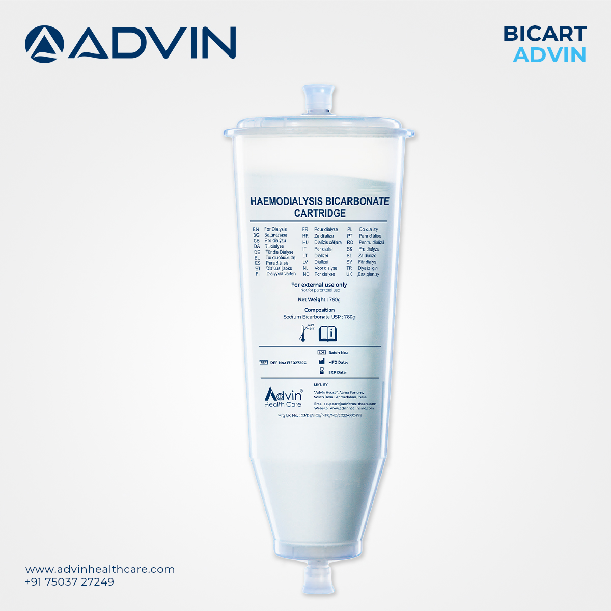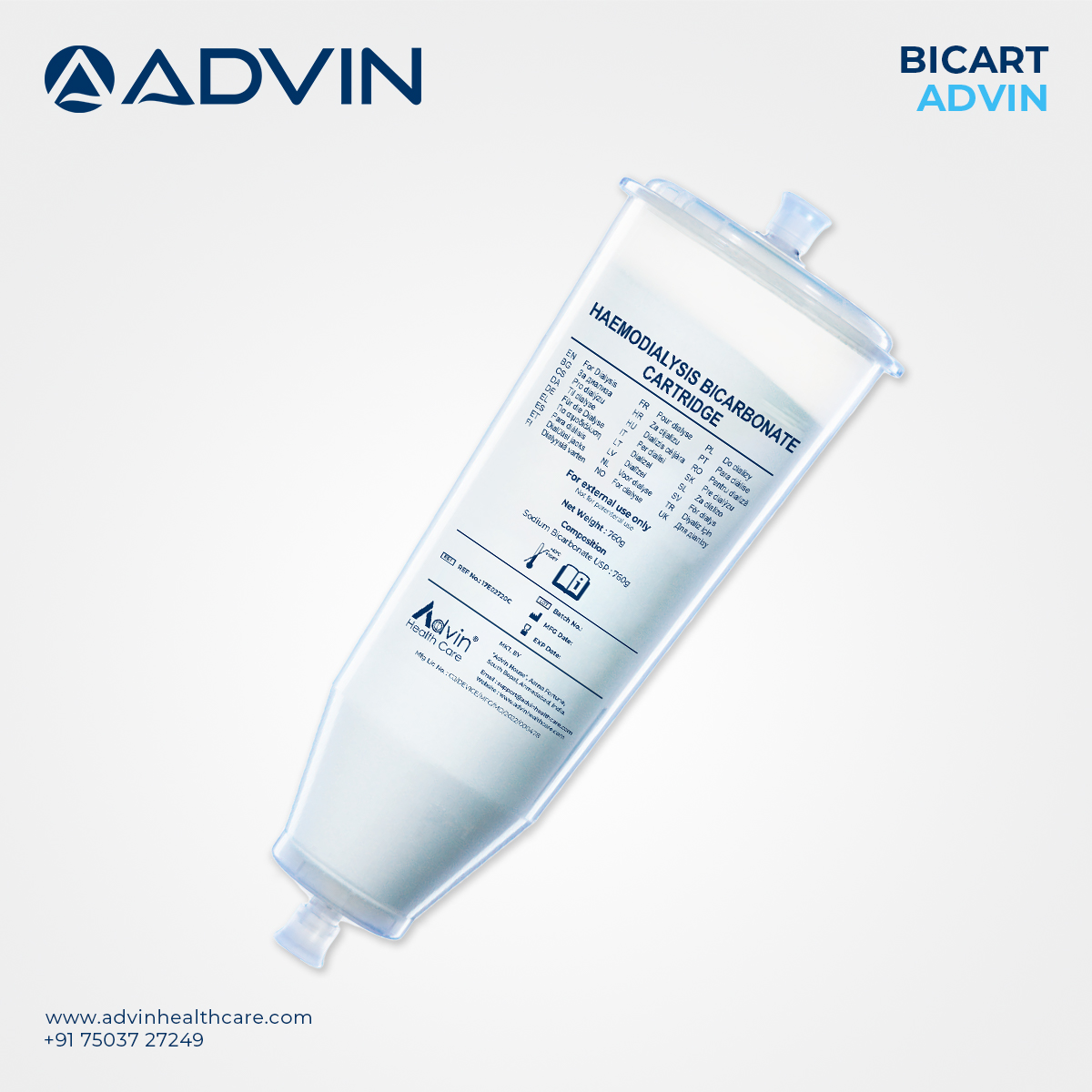 The Advin Bicarb Cartridge is a pre-filled, ready-to-use cartridge that contains high-purity sodium bicarbonate for use in bicarbonate dialysis. It offers a closed, sterile system that minimizes contamination risks and ensures consistent dialysate quality during treatment.