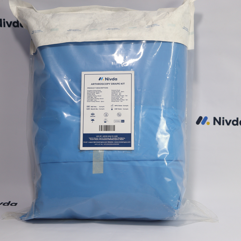 Arthroscopy Drapes & Kit are designed to support precision during procedures involving small incisions and specialized instruments. The layout allows clear access to the joint area while keeping surrounding surfaces properly protected. Nivda Drapes maintains strict quality standards to ensure reliable materials and consistent performance. These drapes help reduce contamination risk, improve workflow efficiency, and contribute to better patient safety during arthroscopic operations.
