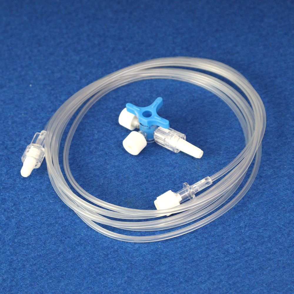 Extension Line with 3 Way Stop Cock is a medical device used to extend intravenous lines and control fluid flow with ease. It provides multiple access points for injecting or withdrawing fluids during medical procedures. This device is designed for safe, sterile, and convenient use in various clinical settings.