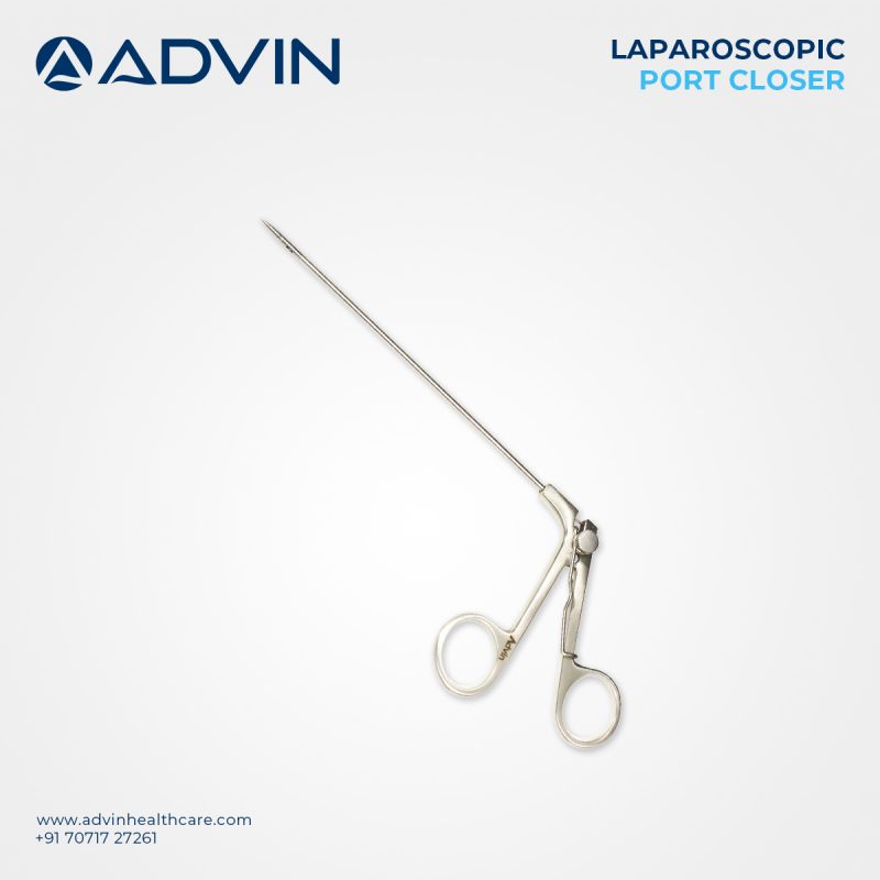 Advin Health Care manufactures the Port Closure device, designed to facilitate safe and effective closure of laparoscopic port sites. This instrument allows surgeons to suture the abdominal wall layers with precision, minimizing complications such as port site hernias. Its user-friendly design ensures ease of use and reliability during surgery. Made with high-quality materials, it ensures durability and consistent performance for better patient outcomes.