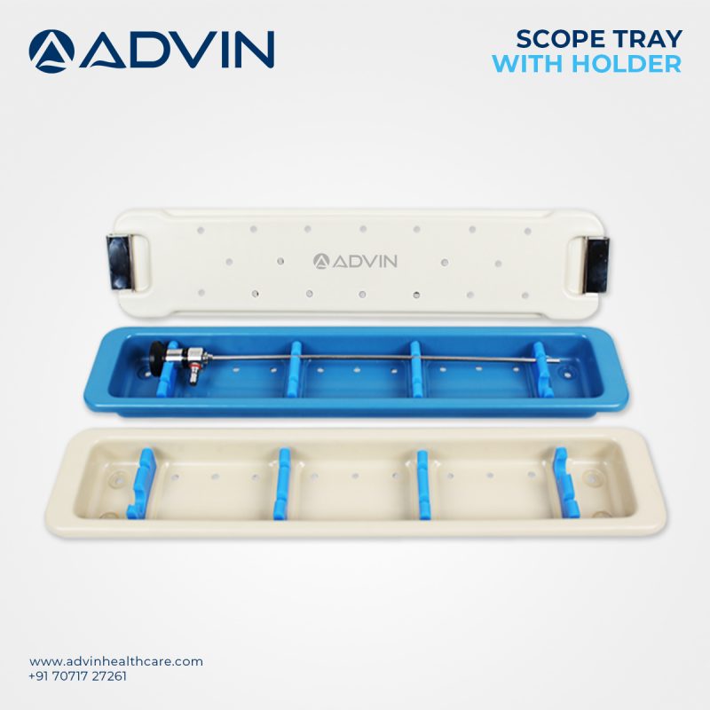 Advin Health Care manufactures Scope Tray with Holder to offer optimal protection and arrangement of endoscopic scopes. Designed with a secure holding mechanism, the tray minimizes the risk of damage during transport, sterilization, and storage. It is constructed from high-quality, medical-grade materials suitable for repeated sterilization cycles. This tray ensures convenience for healthcare staff while maintaining the integrity and longevity of sensitive scopes used in various procedures.