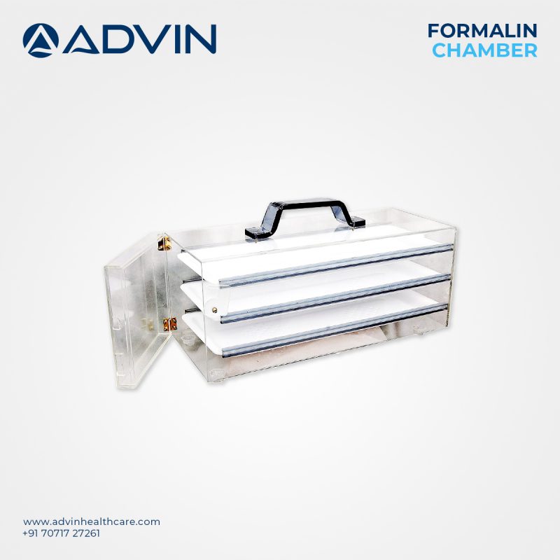 Advin Health Care manufactures the Formalin Chamber with international quality standards to provide efficient and chemical-based sterilization of medical instruments. This chamber uses formalin tablets or solutions to produce formaldehyde vapors, which disinfect equipment without damaging sensitive tools. It is especially suitable for endoscopes, optical instruments, and heat-sensitive devices. Constructed with durable material, the chamber ensures long-term usability and easy maintenance in hospital and clinical environments.