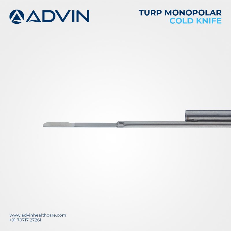 The Monopolar TURP Cold Knife is specially developed for use in TURP (Transurethral Resection of the Prostate) procedures requiring precise mechanical incisions. Manufactured by Advin Health Care, this knife offers excellent control and cutting precision during delicate urological surgeries. It enables clean dissection without thermal damage, making it suitable for procedures where coagulation is not required. The cold knife design ensures reduced collateral tissue impact and enhanced healing.