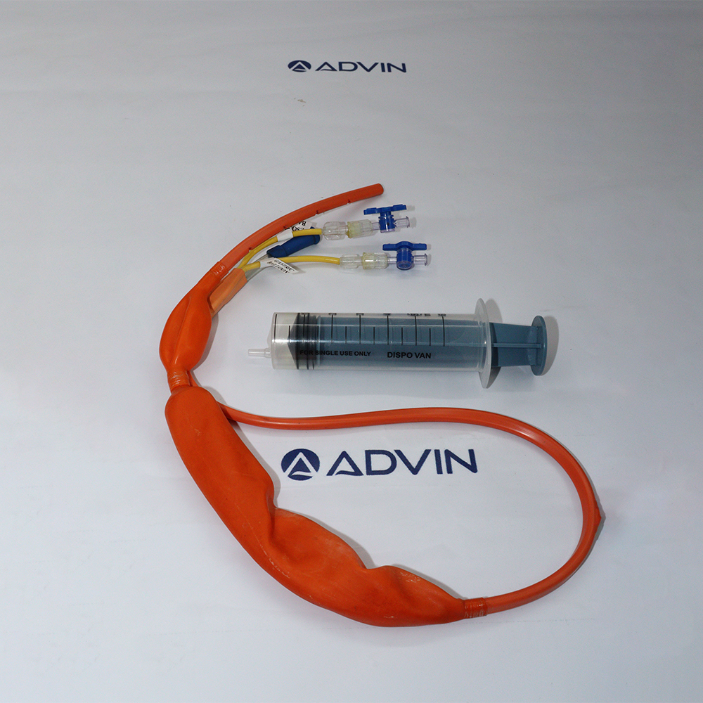 Advin Gastrology’s Sengstaken Esophageal Balloon is a specialized device designed to manage acute bleeding in patients with esophageal varices, particularly in emergency settings. The catheter features dual balloons—one gastric and one esophageal—that can be independently inflated to provide direct compression and tamponade to control variceal hemorrhage. It is made from soft, biocompatible materials for patient comfort and includes multiple lumens for balloon inflation and gastric aspiration. The device is radiopaque for clear visualization during placement and is sterile for single-use application.