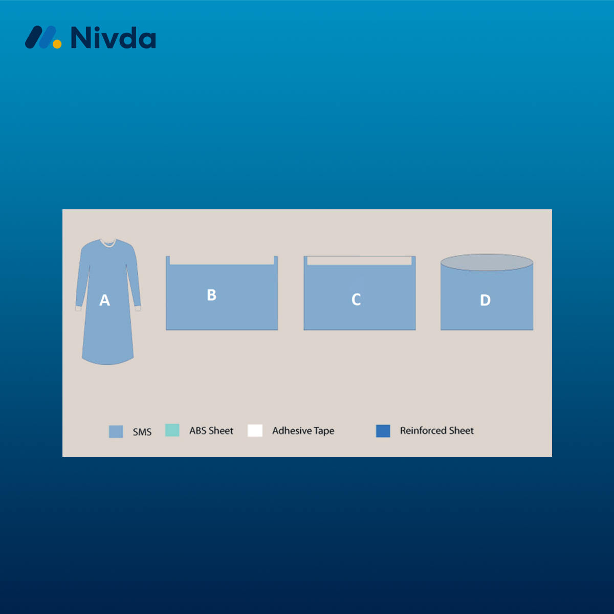 Nivda Drapes Universal Drape Kit is designed to offer versatility and sterility for multiple surgical applications. Made from high-quality non-woven, fluid-resistant material, the kit ensures maximum protection against contamination. Its components provide full patient coverage while allowing precise access to the operative site, making it ideal for general surgery, orthopedic, gynecology, and other procedures. This drape kit enhances infection control, workflow efficiency, and patient safety across various surgical departments.